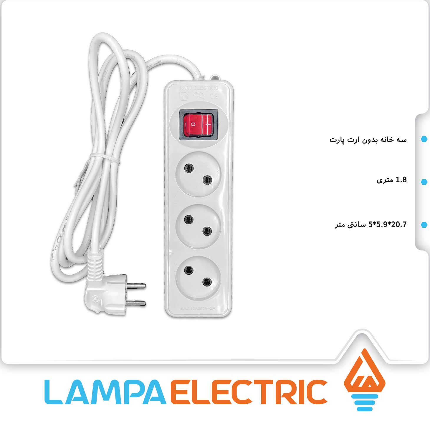 سه خانه بدون ارت 1.8 متری مدل شهاب پارت الکتریک