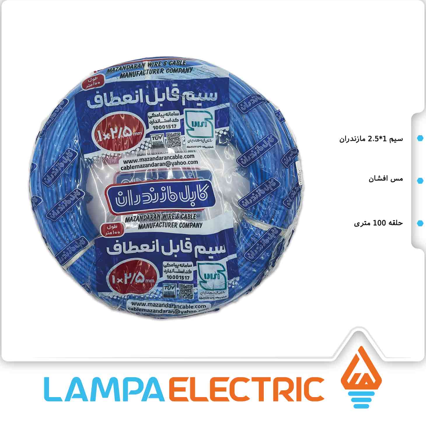 سیم برق افشان نمره ۱ در ۲.۵ مازندران با رسانایی عالی و کمترین افت ولتاژ انواع تجهیزات الکتریکی ساختمان با بهترین قیمت از لمپا الکتریک.