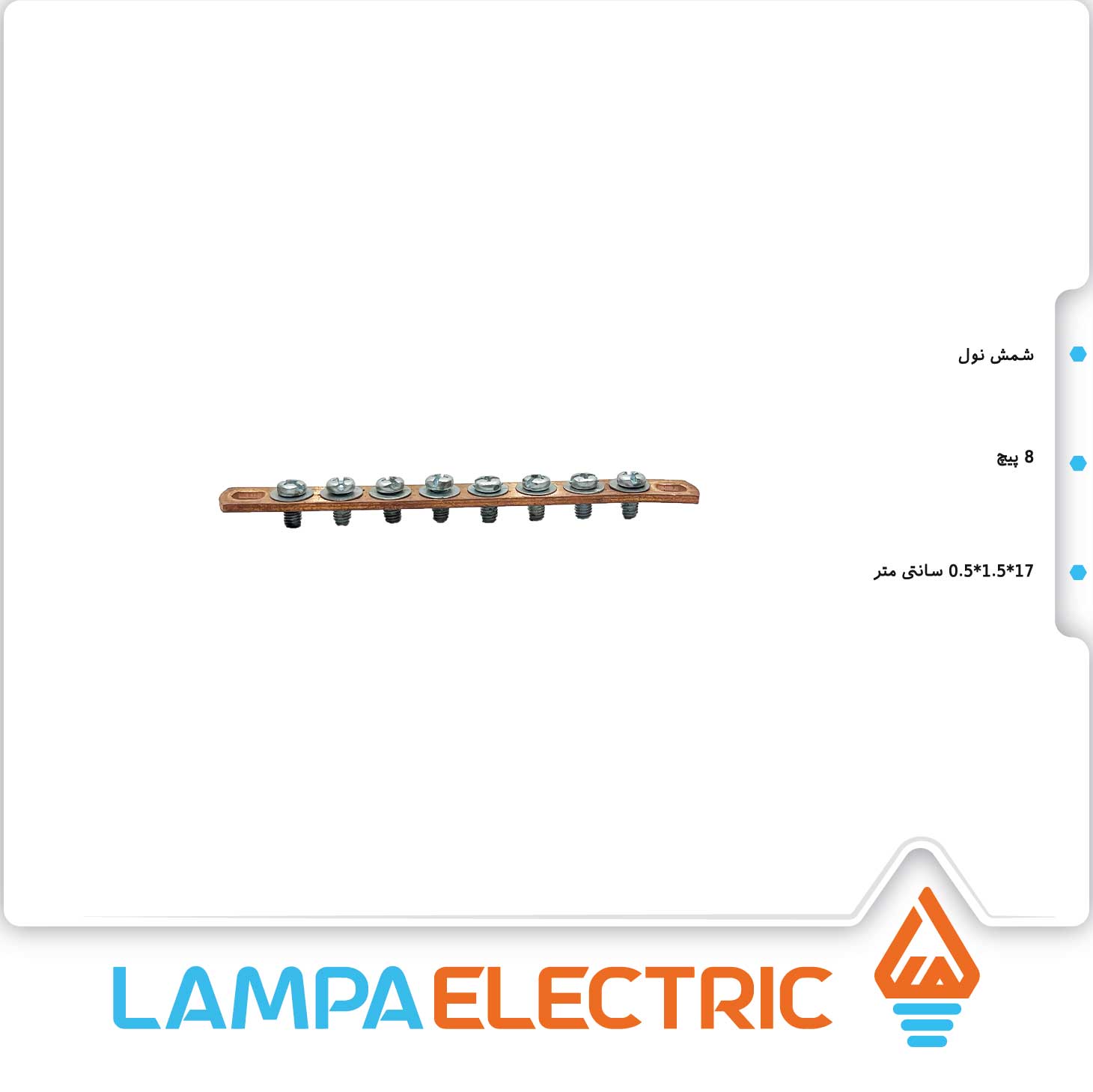 شینه مسی نول 8 پیچ ساخته شده از یک تسمه مسی به عرض 15 میلیمتر و ضخامت 3 میلیمتر از لمپا الکتریک قیمت مناسب بخرید.