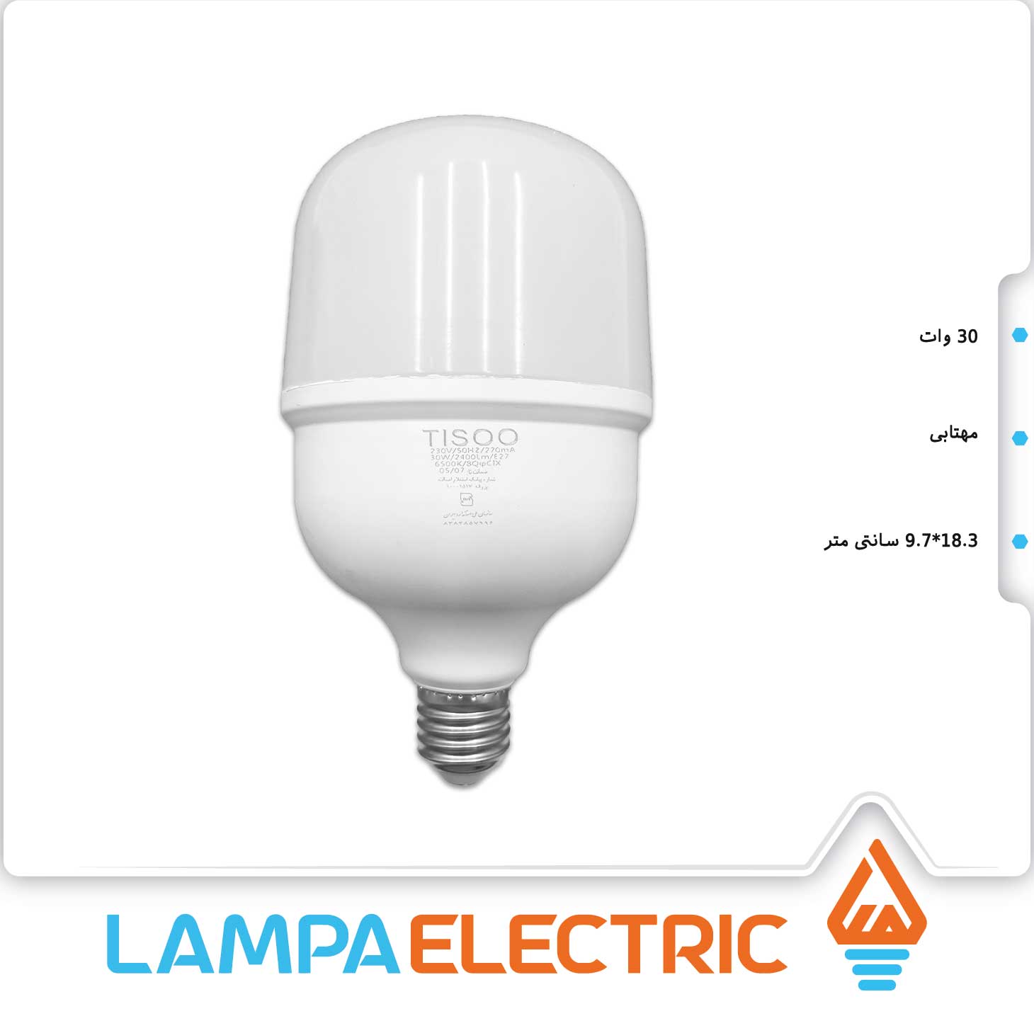 خرید لامپ ال ای دی 30 وات استوانه مهتابی تیسو سازگار با محیط زیست و جریان مصرفی ۲۷۰ میلی آمپر با قیمت مناسب و ارسال سریع از لمپا الکتریک.