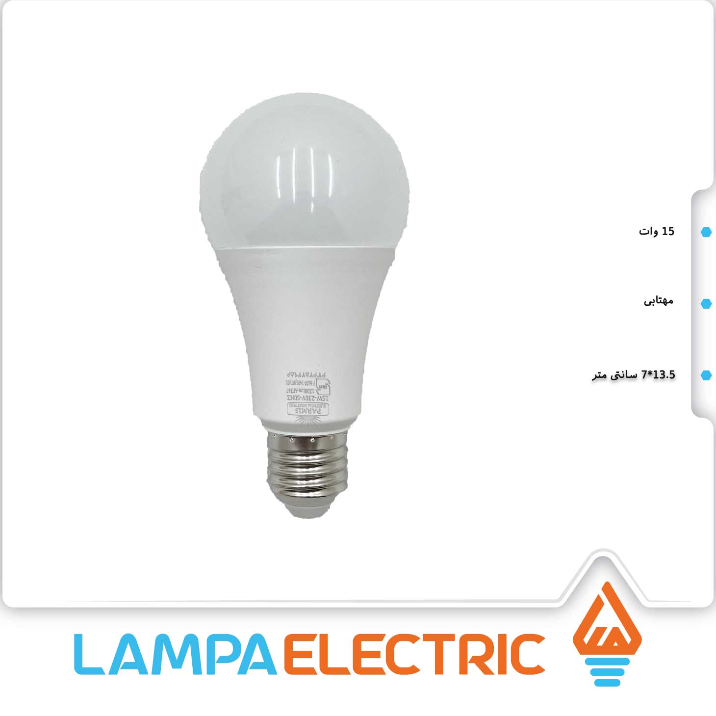 لامپ حبابی ال ای دی 15 وات پارمیس مهتابی کم مصرف بدون اشعه، مقاوم در برابر شوک با گارانتی ۱۸ ماه تعویض از لمپا الکتریک به صورت عمده یا تک بخرید.