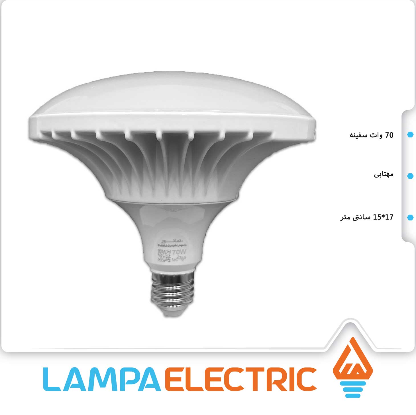 لامپ سفینه ای ال ای دی 70 وات نمانور. خرید لامپ قارچی 70 وات مهتابی با بازده نوری بالا و کم مصرف،از فروشگاه لمپا الکتریک با قیمت اقتصادی.