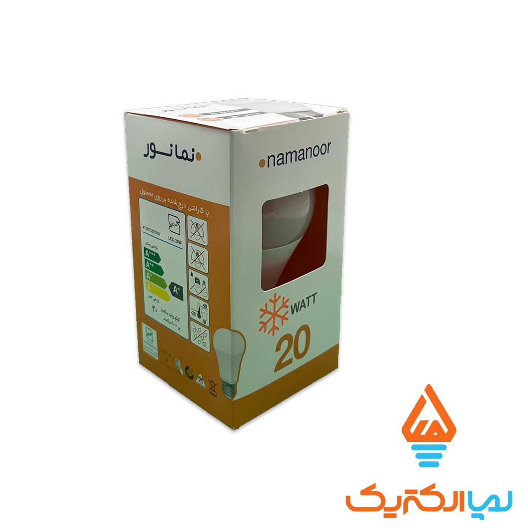 خرید لامپ ۲۰ وات ال ای دی حبابی با سرپیچ E27 با رنگ نور صدفی 4000K با کیفیت بالا از برند نمانور از لمپا الکتریک با قیمت مناسب و گارانتی معتبر.