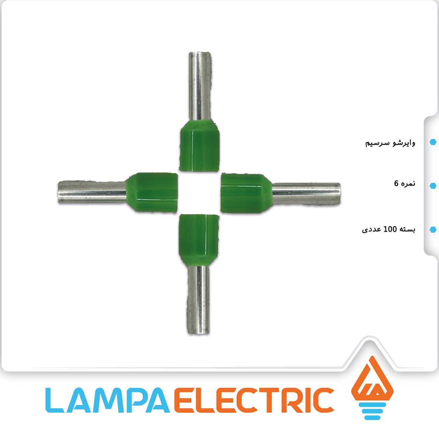 خرید عمده و تک وایرشو (سر سیم سوزنی) سبز سایز 6 بسته 100 تایی مانند فیش طراحی شده با کاربرد اتصال صحیح سیـم هادی به محل اتصـال بهترین قیمت از لمپا الکتریک.