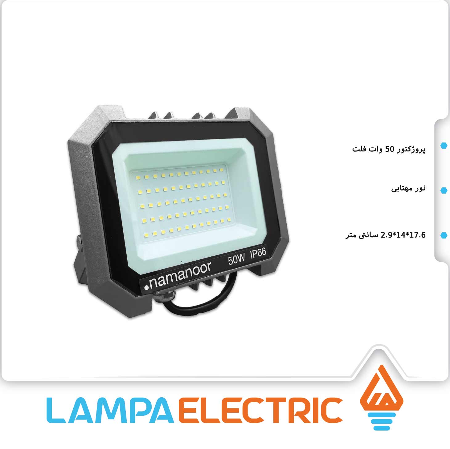 خرید پروژکتور 50 وات ال ای دی ضد باران نمانور مدل smd مناسب برای نورپردازی فضاهای باز، فروشگاه های بزرگ، ورودی هتل ها، فضای سبز و … قیمت مناسب از لمپا الکتریک.