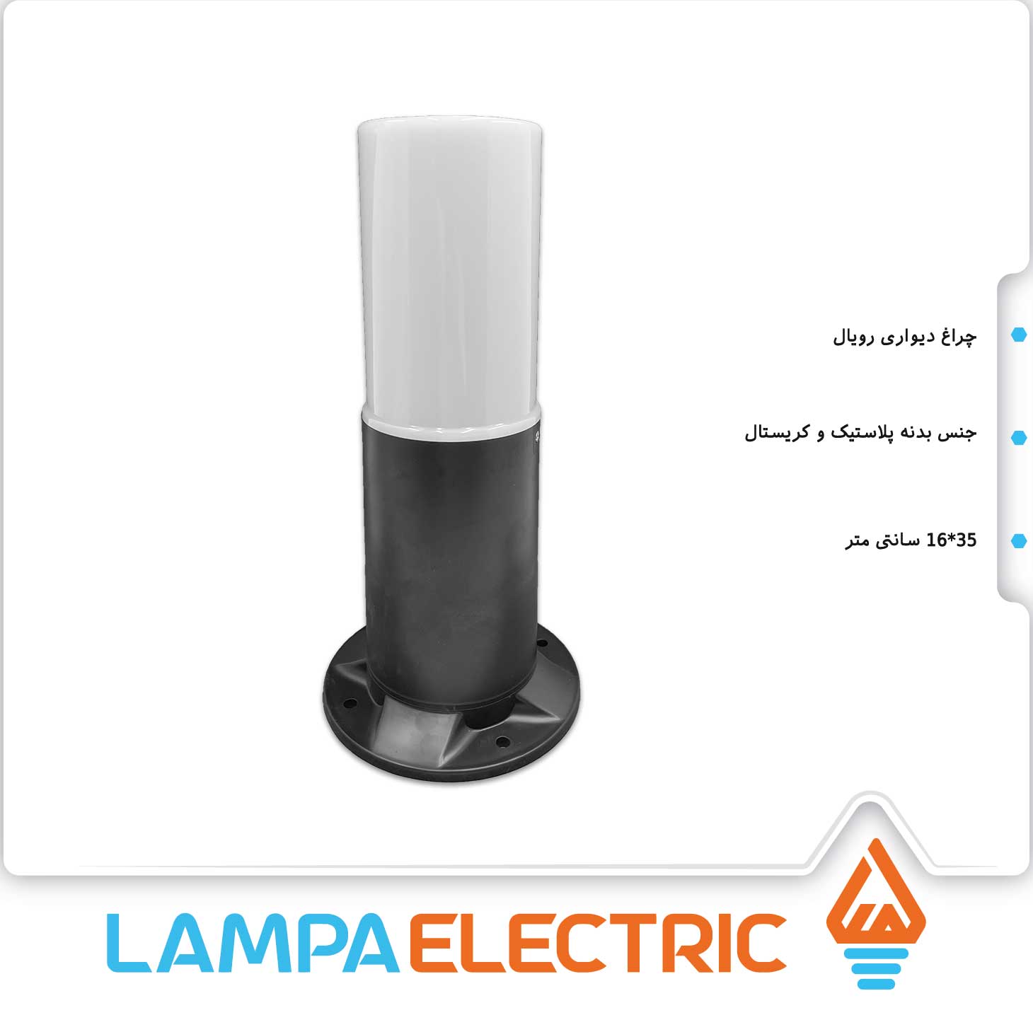 خرید چراغ حیاطی چمنی 35 سانتی مدل رویال دوستان با طراحی مدرن حداکثر لامپ قابل استفاده 30 وات حبابی با بهترین قیمت از لمپا الکتریک.