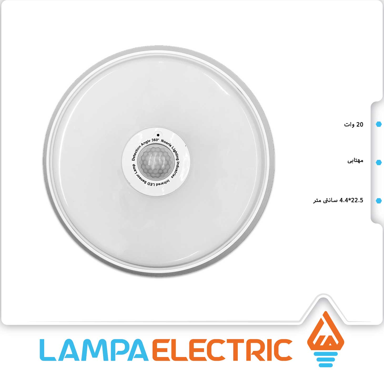خرید چراغ سقفی سنسوردار روکار۲۰ وات نوریس بدون نیار به برش داخل سقف با نصب سریع و آسان بدون واسطه با قیمت مناسب از لمپا الکتریک.