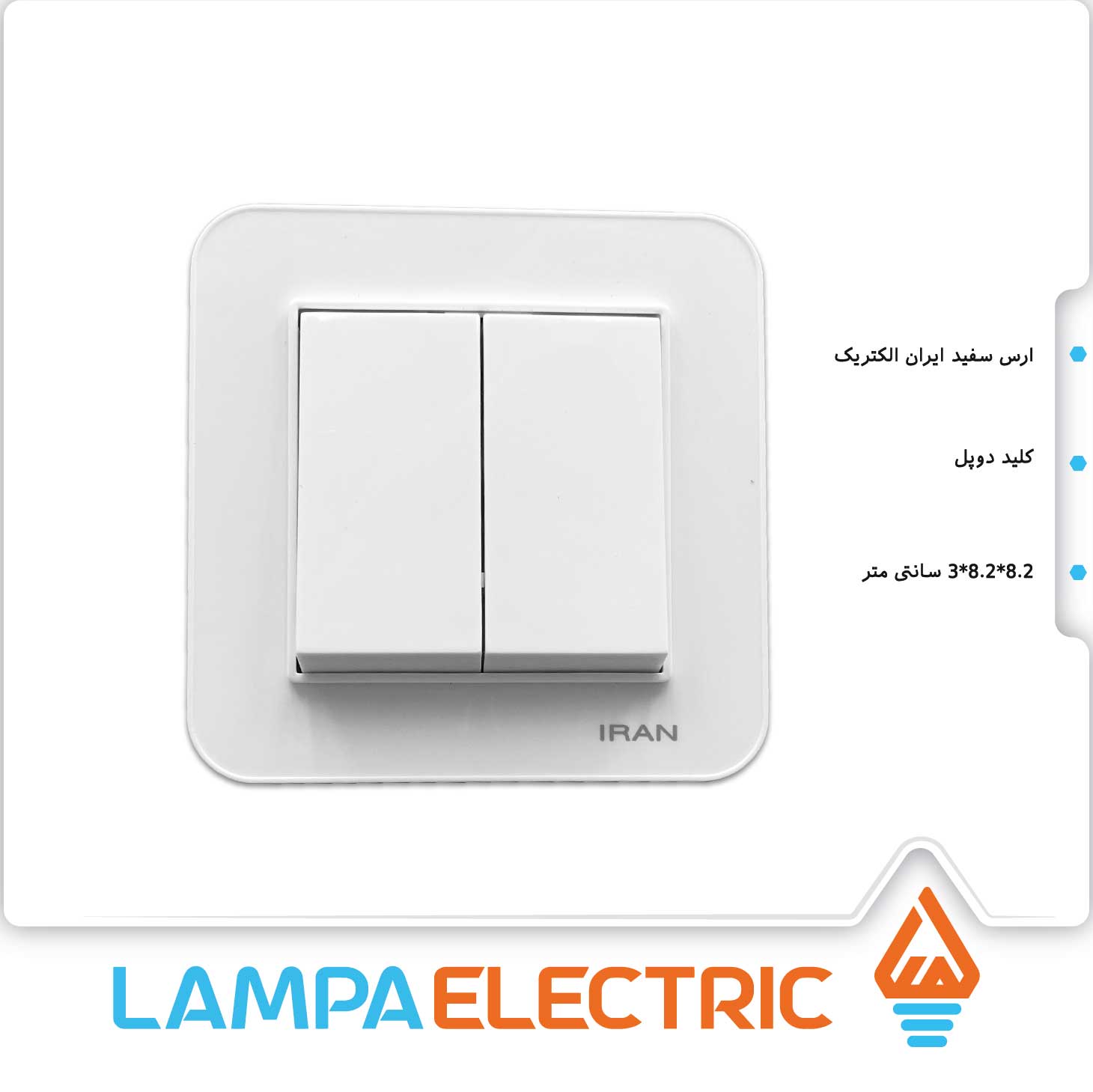خرید کلید دوپل ارس سفید ایران الکتریک توکار منطبق با طراحی روز دنیا از سری کلید و پریز های مقرون به صرفه جنس پلی کربنات قیمت مناسب از لمپا الکتریک.