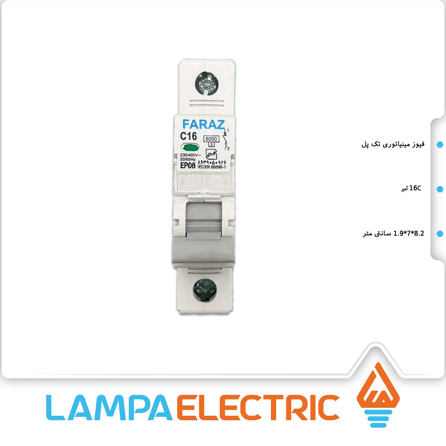کلید مینیاتوری تک فاز 16 آمپر فراز مدل C16 قابليت حفاظت در مقابل اضافه جريان (اضافه بار) در مدار از لمپا الکتریک با گارانتی معتبر بخرید.